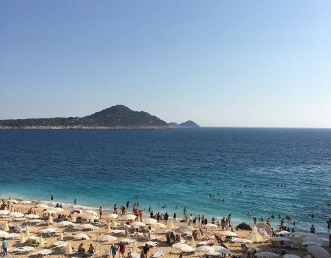这是一个非常美丽的海湾,海水瓦蓝瓦蓝的,就像是一块引人注目的绿松石。这的海滩大部分都是当地人在这度假这是一个非常美丽的海湾,海水瓦蓝瓦蓝的,就像是一块引人注目的绿松石。土耳其人非常喜欢蓝颜色,他们的纪念品就是蓝眼睛,据说可以辟邪。这的海滩大部分都是当地人在这度假。这块海滩据说还是网红海滩。