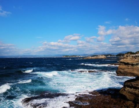 斜坡状的白色软质岩石,在滚滚波浪的侵蚀下,创造出一个形如其名的景观,景点是免费的从濑户崎的前沿伸向太平洋,由3层砂岩形成的大岩盘。斜坡状的白色软质岩石,在滚滚波浪的侵蚀下,创造出一个形如其名的景观,景点是免费的。