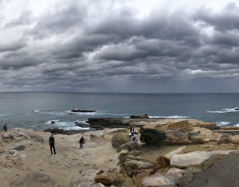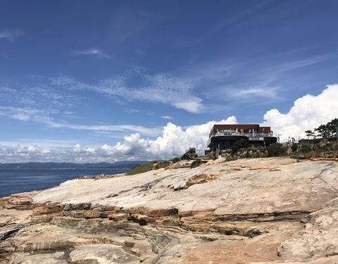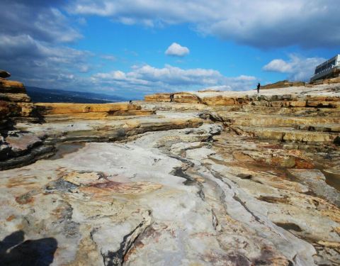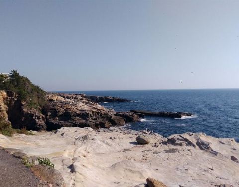 岸边有一些餐厅,不过没来得及去。在海边体验到了爬山的乐趣(在海边体验到了爬山的乐趣(?)站到最高的礁石上可以拍出一种呼风唤雨的赶脚( ⚆ w ⚆ )…… 礁石上多是前人留下的刻字,还有处处积水,或许是涨潮时会淹到一部分吧。 岸边有一些餐厅,不过没来得及去。