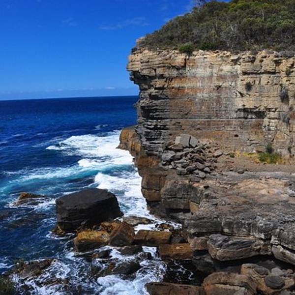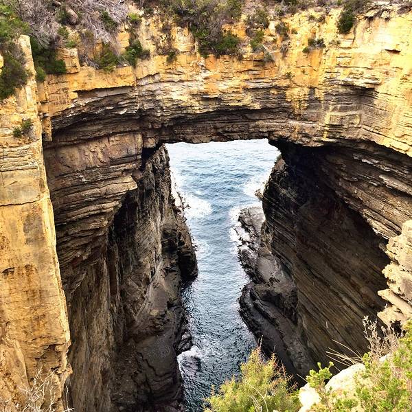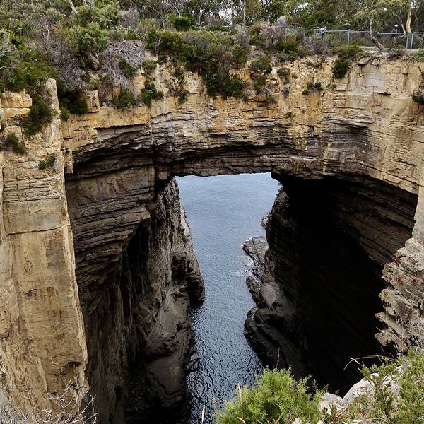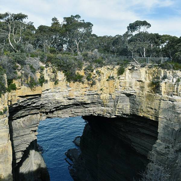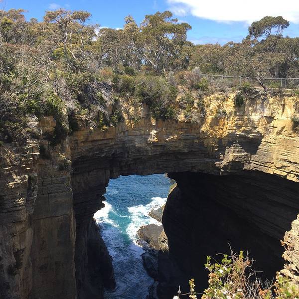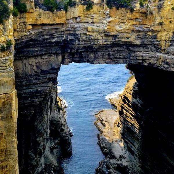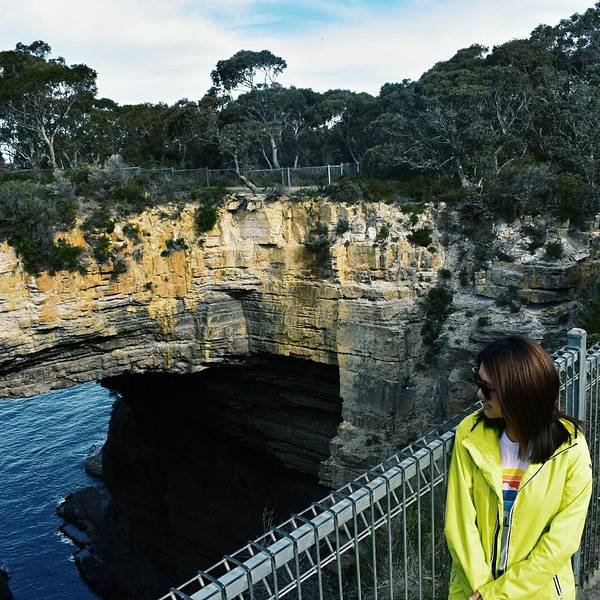 塔斯曼拱门(Tasman arch)是在大自然这位能工巧匠的手下,经过漫长的岁月,将偌大的花岗岩山体风化剥蚀,形成一个巨大的桥洞,这就是所谓的“塔斯曼拱门”。在防护栏前,可以看到像大洋路伦敦桥拱门一样壮观的场景,拱门下波涛汹涌,站在这里可以亲身感受到大自然带来的震撼和恐惧。蔚蓝色的大海在猛烈的冲击着拱门周围的岩石,雪白色的浪花随着海浪的翻涌而不停的产生,壮观的场景,极富有观赏性,并且周围景色秀丽,宽阔的视野给人一种自由翱翔的感觉。