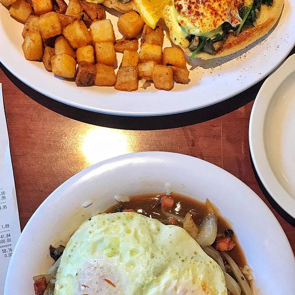 坐落于维基基海滩旁的一家早餐店 以鸡蛋为主打 还有松饼 基本上都是需要排队的 谁叫是网红早餐店呢 不过还算好 没有排队等很久 和宝宝两个人选择了一个套餐:一份一份松饼还有饮料 煎蛋下面还有培根肉丁等,可以...坐落于维基基海滩旁的一家早餐店 以鸡蛋为主打 还有松饼 基本上都是需要排队的 谁叫是网红早餐店呢 不过还算好 没有排队等很久 和宝宝两个人选择了一个套餐:一份一份松饼还有饮料 煎蛋下面还有培根肉丁等,可以切开来包着吃 还有热腾腾的薯条配菜 松饼选择的是香蕉原味 搭配蜂蜜酱汁 奶油 量很大 两个人吃了很饱 如果早点去还可以抢到窗边位 看看海边风景