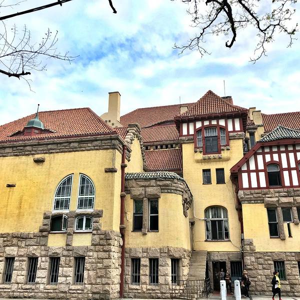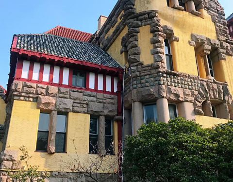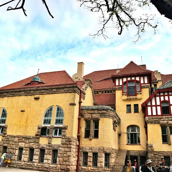 百年历史,德国古堡式建筑,背后是信号山公园。