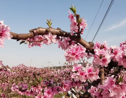 阳山桃花源离市区二十多公里,花期车多,大都在路边停车。景区规划性不强,桃园归农户,不得进入的,可以理解,被游人碰坏了直接影响水蜜桃产量了。艳阳下的桃花甚是妖娆,看图吧。