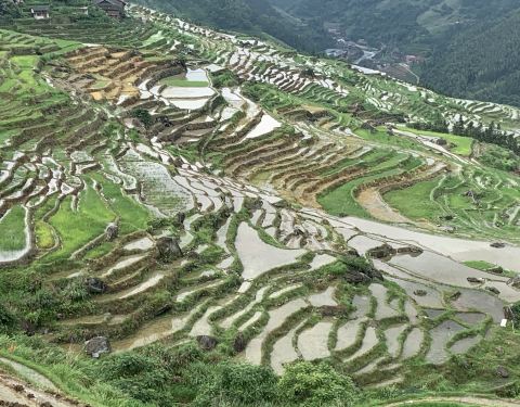 龙脊古壮寨梯田相比平安壮寨、千层天梯、金佛顶观景点梯田更显沧桑古老,不规则图形更多,独具特色龙脊古壮寨 从黄洛瑶寨返回景区大门的路上去了龙脊古壮寨景区。龙脊梯田景区有三个需要检票的景区,平安壮寨景区、龙脊大瑶寨梯田观景区、龙脊古壮寨景区。在景区游客服务中心买票进入龙胜梯田景区后一定要保存好...龙脊古壮寨 从黄洛瑶寨返回景区大门的路上去了龙脊古壮寨景区。龙脊梯田景区有三个需要检票的景区,平安壮寨景区、龙脊大瑶寨梯田观景区、龙脊古壮寨景区。在景区游客服务中心买票进入龙胜梯田景区后一定要保存好门票。在龙脊古壮寨景区门口检票后车就不让往里开了,景区内还有一个龙脊百年古屋和一个展览馆,但距离景区大门步行需要半个小时,可以乘坐电瓶车,但是我们到达时景区门口只有我们二人,电瓶车要凑够人数才开。天气炎热,不想再走了,百年老屋和博物馆我们没有去。只在景区栈道上观赏梯田,远远好像能看到博物馆和老屋。龙脊古壮寨梯田相比平安壮寨、千层天梯、金佛顶观景点梯田更显沧桑古老,不规则图形更多,独具特色。希望去过龙脊百年古屋和瓦窑观景亭的朋友发个旅拍,分享一下。龙脊古壮寨景区是距离景区大门最近的景区,游览后就可以返回景区大门了。 展开