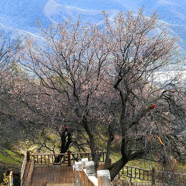 福寿山的野杏花花期比吐尔根乡的杏花晚,错过吐尔根乡的杏花可到这里弥补遗憾,很壮观,开得漫山遍野,沿木栈道可一直爬到山顶,能见到雪山,门票54元包括景区交通,性价比高!