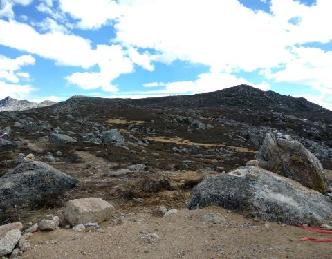 海拔4696米的兔子山是横亘在川藏线上的一道山梁,位于青藏高原的边缘地带,四周山峦起伏,山上终...海拔4696米的兔子山是横亘在川藏线上的一道山梁,位于青藏高原的边缘地带,四周山峦起伏,山上终年积雪不化,只有冰川砾石,没有植被。