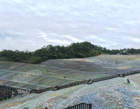 星空草原是根据梵高名画打造的,这里用了400万个塑料瓶来组成了这样的一个草原,不同颜色的塑料瓶整齐的排列在各自的位置,形成了一个极具观赏性的不一样的草原。五颜六色在远处看起来就像是彩虹一样,整个占地4.3万平方米,面积之大,实属罕见,在国内国外都是首屈一指的。白天的景色是一个样子,在晚上点上灯光之后,不同颜色的灯光把所有的塑料瓶都能够照到,反射出炫丽斑斓的彩色,在夜空的黑幕下,显得特别的好看,会给人全新的感受,是一场视觉享受。