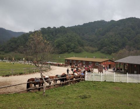 坐景交车进去,适合散步,不累,有滑草,骑马等游玩项目,有梅花鹿,合适孩子玩。说是大水川,可是没见水
