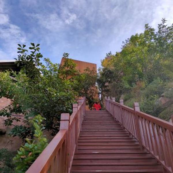 金骆驼 栈道就20米长度吧,而且在我看来非常低矮,不过旁边有个大妈上去就高血压了,老年人还是慎重选择吧我们是沈阳出发的一日游团队,具体地址、停车信息不太清楚,都是跟着大巴走的喽。