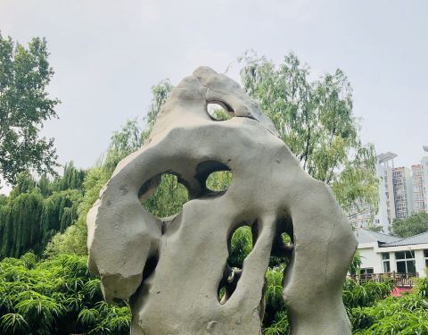 院内绿树成荫,繁花似锦,是纳凉的好去处,喷泉,假山,雕塑,荷塘交相呼应,一步一景