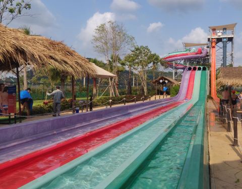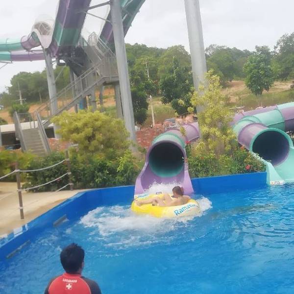 多以觀光客為主 設施都蠻刺激而且安全 推一個自由落體滑水道,敢玩的一定要玩,刺激感超棒噠 園區...在地人不多,多以觀光客為主 設施都蠻刺激而且安全 推一個自由落體滑水道,敢玩的一定要玩,刺激感超棒噠 園區內自助餐也挺好吃,尤其是河粉個人吃了兩碗 整體都很棒 水質挺乾淨,不會有過重的藥水味
