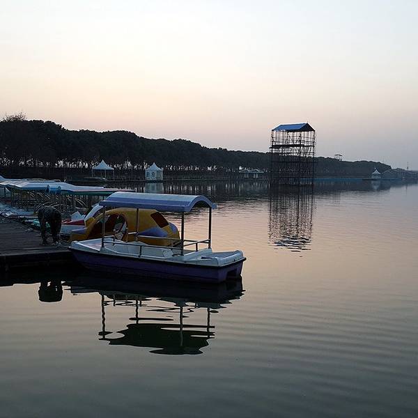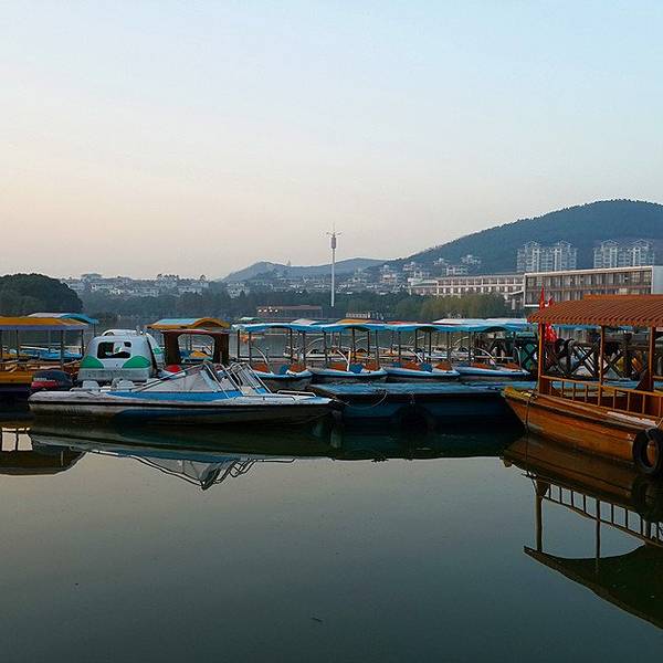 如果入住竺山湖附近的度假村,也可以考虑去常州嬉戏谷景区游览,相距不是太远。总之,那里环境清静,山清水秀,旅游设施良好,非常适合度假。湖水清澈,风平浪静,很安逸的感觉。湖边的游船码头 展开