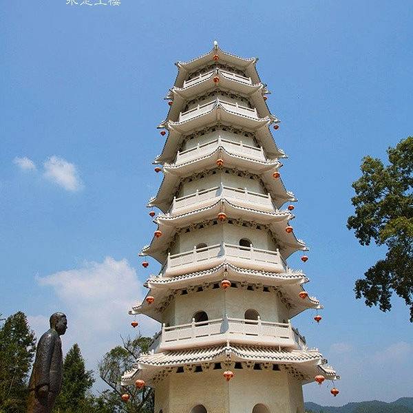 【虎豹塔(建于2006年2月16日,造价198万元,再加上园林广场、胡文虎铜像、碑林、游步道等附属工程,总造价为348万元,总建筑面积为970多平方米)参照香港“虎豹别墅”的虎塔进行设计,塔高七层(45.66米),塔形...