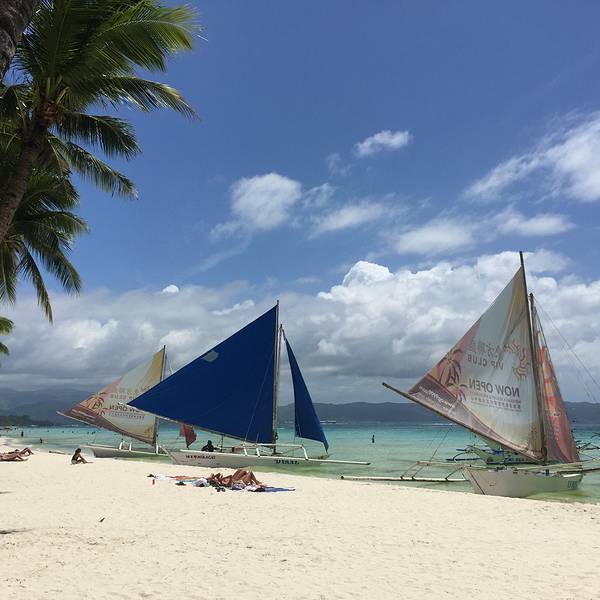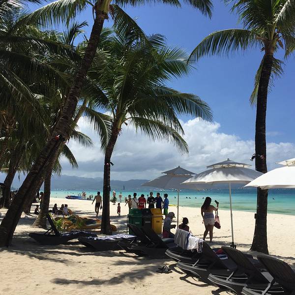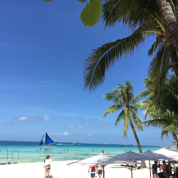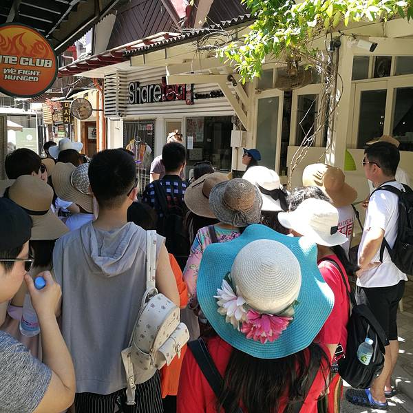 街景两张传说中污染严重如化粪池的白沙滩!看见那一刻,还是被惊艳到了!我们毫不犹豫地到“化粪池”里happy啦!😂高大的椰树,细软的沙滩,美丽的比基尼!我不就是喜欢这样赤脚走在沙滩上欣赏美景嘛!芒果冰淇淋前排长队呀!特写一张螃蟹🦀️船通过漫长的等待,我们终于买到halomango的冰淇淋啦!真的好吃!本来当时决定随后几天都要来吃一个,结果却没时间啦!离岛的时候我还在想念那个味道!