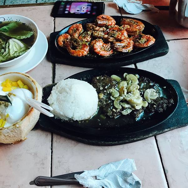 看推荐 都在说牛骨汤好喝 .简直就是白菜打汤o.不要点真的没有味道.哈哈.说错 有咸味椰子冰激凌好好吃.125p在d'mall 里面.对面是比较网红的餐厅msoke便宜味道相对来说还可以.芒果汁 哪里都是一样 100p一杯 大概差不多价位.味道大都是一样新鲜芒果打成汁刚刚说的椰子冰激凌的店.Cocomama这家餐厅还不错 属于连锁餐厅 序号5配上小米饭的鸡比招牌鸡好吃多了.味道带辣烤的焦焦的脆脆的.好吃😋性价比太高了.在长滩岛吃的最便宜的一餐.