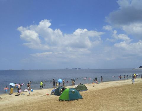 就在市区,非常方便。个人觉得第一浴场也不错,毕竟更方便,如果只是小孩玩水的话足够了就在市区,非常方便。游泳本身是不收费的。租用更衣室、座椅、阳伞要收费。也有自驾游的直接开车停在马路边。有很卖泳装,游泳圈,以及小孩玩儿的小桶、铲子等。8月12日早上拍的照片,泡在水里主要是老头和小孩,...就在市区,非常方便。游泳本身是不收费的。租用更衣室、座椅、阳伞要收费。也有自驾游的直接开车停在马路边。有很卖泳装,游泳圈,以及小孩玩儿的小桶、铲子等。8月12日早上拍的照片,泡在水里主要是老头和小孩,据说这会儿人比起高峰时间已经不算多。其实立秋以后才是游海泳的好时间。据说本地人去金沙滩浴场的居多,离市区还有十多公里,那里沙更细更干净。个人觉得第一浴场也不错,毕竟更方便,如果只是小孩玩水的话足够了。 展开