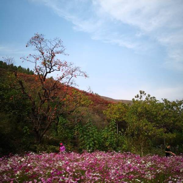 漫山遍野的格桑花很漂亮,特别适合拍照。还有红叶和柿子,不错,值得一去。