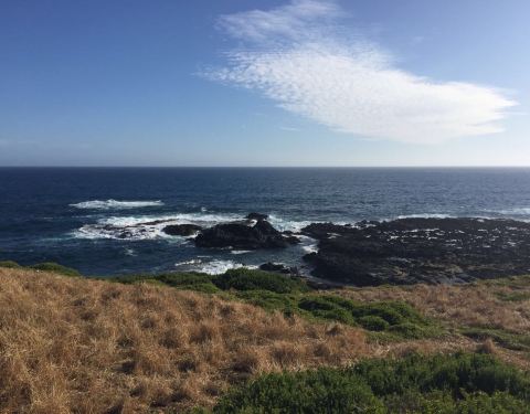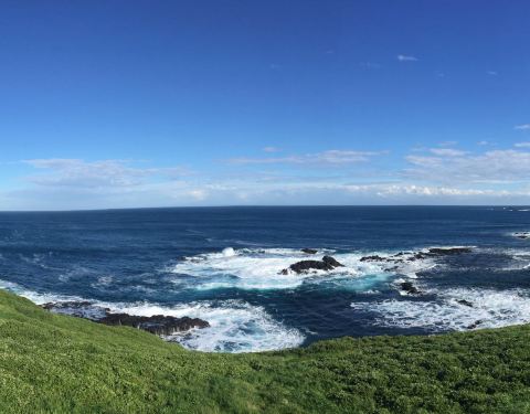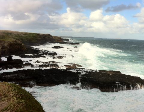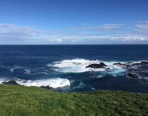 诺比司角观景,在这里可以俯瞰威士顿伯特海湾和巴斯海峡,还有海豹岩。视角开阔,风贼大,浪也很大。