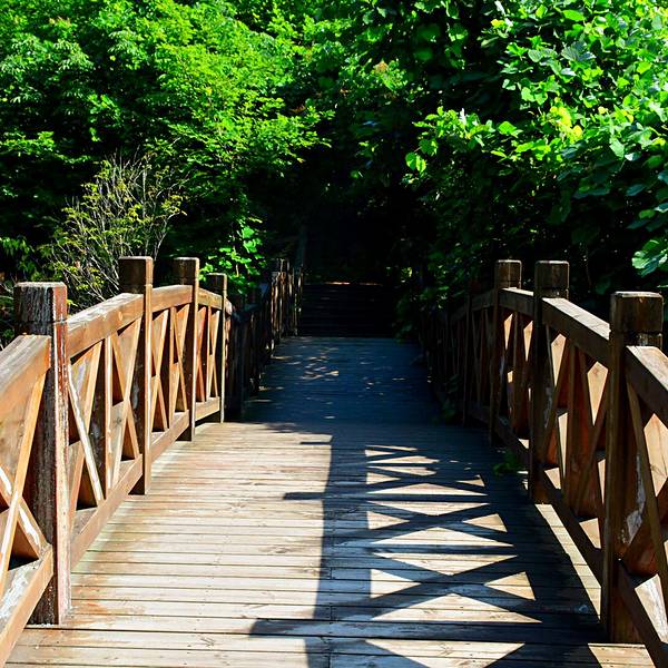 鹿跳峡又名“一步峡”,宽敞处开阔明朗,狭窄处似一步可越。传说一只母鹿救起掉入水中的小鹿,自己却葬身激流。对岸山崖形似鹿头、鹿角,就是守望母亲的小鹿化成。周边的景色非常秀丽,树木环绕,溪水清澈,空气清新,此中漫步似有画卷中般徜徉,流连忘返。