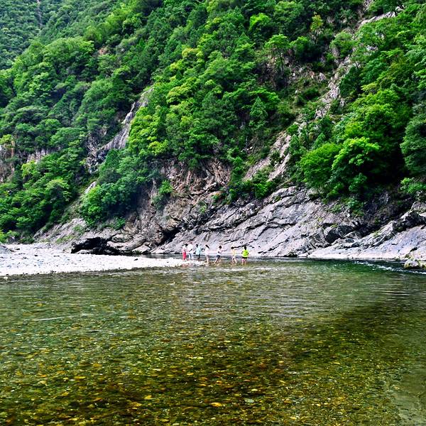 进山第二景,黑河水库,这是西安市的主要饮水源,苍山绿水,风景如画,有三峡之峻险,下车置身于山涧中戏水,顿觉秦岭之磅礴,河水之清澈,在超高负氧离子的清新空气包围中,炎炎夏日早已被抛出几条街了,这里,来对了