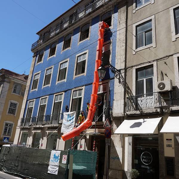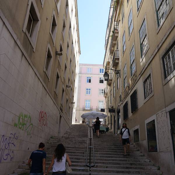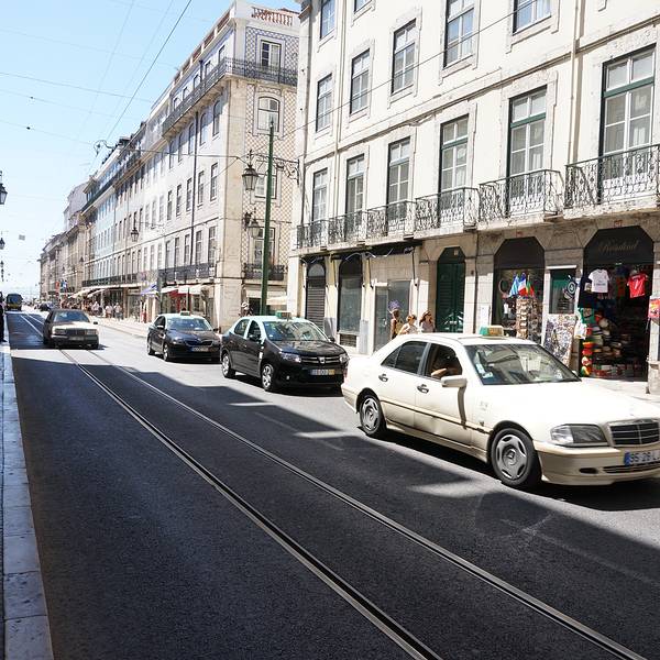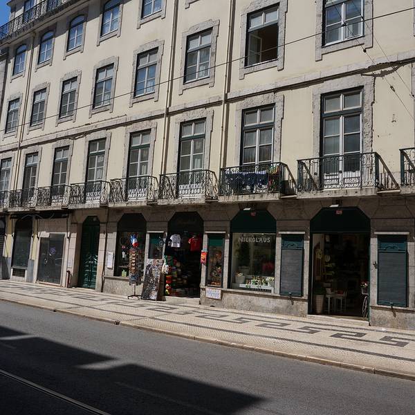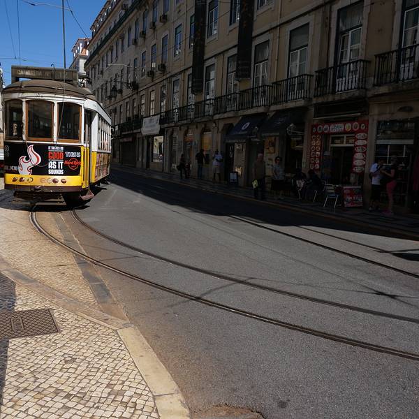 Rus dos Fanqueirosd大街,非常幽静的一条街,如果把奥古斯塔大街比作上海南京东路的话,那么Rus dos Fanqueirosd大街就相当于汉口路了。这条街的商业定位以日用百货、文具和小纪念品为主。安静的Rus dos Fanqueirosd大街街区。街区道路指示。竟然能找到毛线商店,意外。葡萄牙大妈也喜欢织毛衣么。Rus dos Fanqueirosd大街的工艺品商店。建筑垃圾垂直运输工艺,能有效防止烟尘飞洒。路遇街区的小教堂在国内很少见到的有轨电车。有轨电车过弯时弧形的轨道线路设计。街区驶过的出租车,里斯本的公交车和出租车基本都是Benz,幸福指数很高的城市。里斯本真可谓是七丘之城,隔了一个街区都需要上下坡。