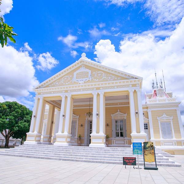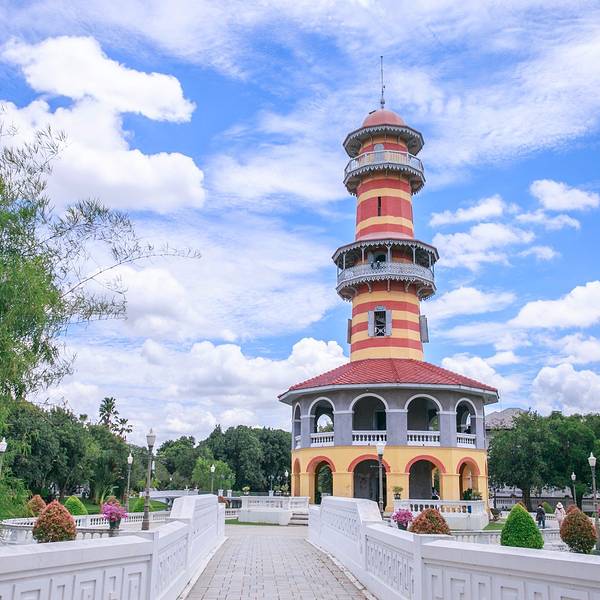 挽巴茵行宫从阿育塔雅王朝起这里就成为皇族的避暑之处在泰国东西南北中五处行宫中,以此处离曼谷最近,也是建筑规模最大,造型最美一处行宫。内有各式风格的古代宫殿,富丽堂皇、古色古香。其中最引人注目的是一座水上皇亭,为泰民族的建筑代表形式之一,每年都吸引不少游客慕名而访。因该宫与大城市区很近,故以后的历代皇帝,都将其作为夏日的行宫。而其中的景点有天明殿、水上皇亭、欧式御花园、石桥等等,各种建筑造型精美,突出了泰国风格的意味。