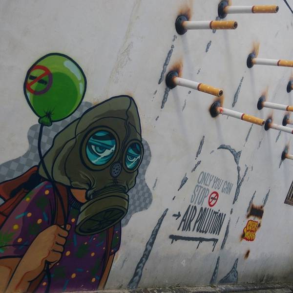 快到Armenian街的时候有许多小巷子,不少游客在里面驻足停留,原来是墙上的涂鸦,包括李小龙踢飞一只猫,以及号召人们少抽烟保护环境的。