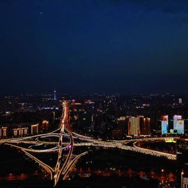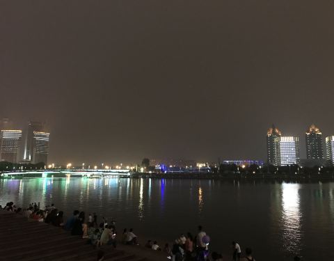 千玺广场是郑州的新景点,入夜,人们从四面八方来到广场,或歌、或舞、或蹓跶漫步、或游览赏景,