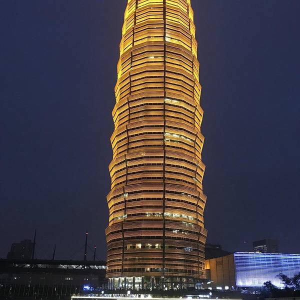 郑州“大玉米”因为楼宇是圆柱塔式建筑,夜晚其布景灯采用黄色设计,而此得名。 其真名为,千禧广场,又名“千玺广场”,是位于河南省省会郑州市郑东新区CBD的一座新地标建筑, 玉米棒子楼在郑州市郑东新区千玺广场CBD中央公园内。 千玺广场,河南艺术中心、老城区、金水路立交桥、郑州国际会展中心、CBD汇成一道新的风景线 …… “大玉米”58层是河南最高的参观展览层,也是大玉米楼城市观光厅。 360度转一圈,可透过巨幕玻璃眺望四面八方, “大玉米”的西南侧、是曾获过中国建筑行业工程质量最高荣誉奖“鲁班奖”的河南艺术中心; 目光向西跳过中州大道,郑州老城区可以尽收眼底; “大玉米”的南侧,是规模宏大的金水路立交桥; 大玉米楼的西面老城区也很美,南面高楼林立运河流淌,这里不比站在日本东京塔上看到的景象逊色。 “大玉米”的东侧,是曾获世界建筑师联盟年会“城市规划设计杰出奖”的郑州国际会展中心; 平视,那是CBD内、外环建筑群;远眺,是广阔的郑东新区;更远处,是包括郑汴一体化在内的河南的未来。 河南艺术中心、郑州国际会展中心与“大玉米”共同构成了郑东新区的地标建筑群。 三者在碧波荡漾的如意湖畔相拥相依,和谐共生,共同昭示着郑东新区规划建设的高度、气魄与魅力。 “中原第一高楼”的设计灵感来自中国现存最古老的砖塔——“嵩岳寺塔”,主楼曲线与“嵩岳寺塔”吻合。 白天,玉米棒子楼婷婷玉立,老远就吸人眼球; 夜晚,灯火辉映下,金黄色的玉米棒子楼如鹤立鸡群般引人注目。 千玺广场是郑州的新景点,入夜,人们从四面八方来到广场,或歌、或舞、或蹓跶漫步、或游览赏景, 一派悠闲、平和、繁茂景象,置身其中,让人流连忘返,不忍离去。 “大玉米”值得来此一游!