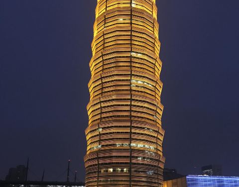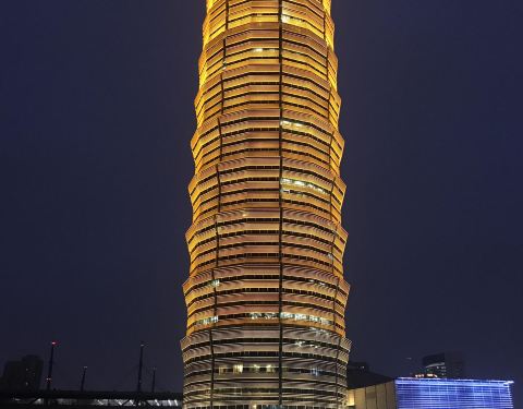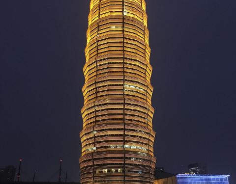 玉米棒子楼在郑州市郑东新区千玺...郑州“大玉米”因为楼宇是圆柱塔式建筑,夜晚其布景灯采用黄色设计,而此得名。