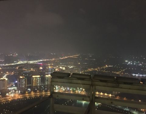 走一圈不要五分钟,其实楼下夜景会更美我觉得。58不算高,夜景灯没有很壮观,所以高空夜景看起来很一般