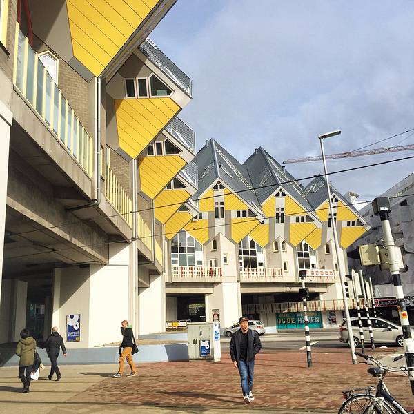 立体屋位于鹿特丹,造型独特,仿佛一个个斜放的魔方,非常引人注目,其外观造型也采用鲜明的色彩,给人以视觉的冲击和新鲜感。
