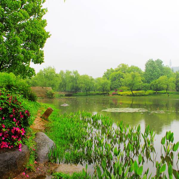其实这里就是一个开放的小公园,有湖水、有绿树鲜花,草地,适合在这里放松,散步,赏花、露营,还可以烧烤和钓鱼。离良渚博物馆很近,步行5分钟。