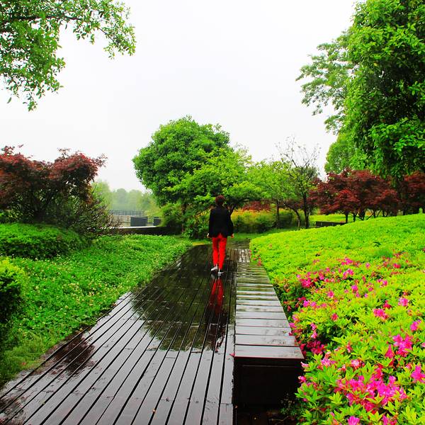 在良渚博物馆前的一个小公园,冬季游人较少,春夏秋季是可以去的在良渚博物馆前的一个小公园,冬季游人较少,春夏秋季是可以去的。春季踏青,夏季烧烤,秋季看枫叶。在公园的观景台里可以近眺良渚博物馆,观察它的外部整体构造