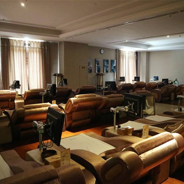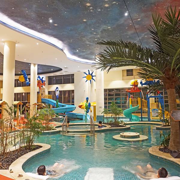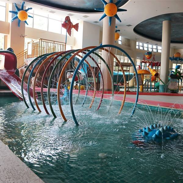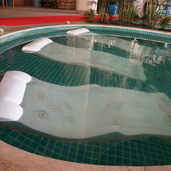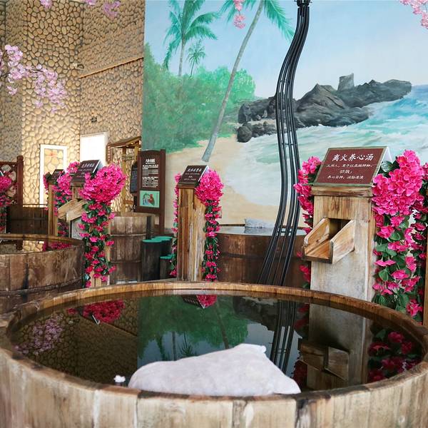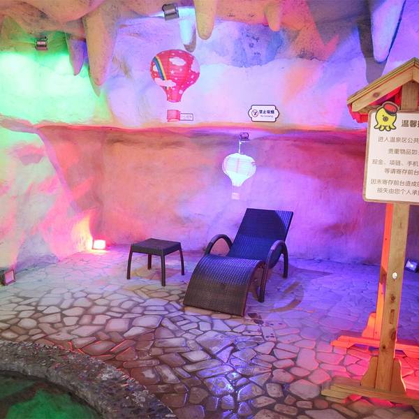 温泉中心水疗大厅,是马尔代夫的星空。特色的星空顶,唯美的装饰,无处不在的马尔代夫风情,令人有掬之入怀的冲动,椰林树影,星光如画,交织成一个海岛般的浪漫之夜;美丽、宁静的景致,呈现出悠闲、常乐的海洋风情。星空穹顶下,拥有恒温泳池、儿童戏水池、50多种功能的水疗池(从人体力学及科学保健的角度,为客户提供从头、颈、肩、背、腰、臀、腿、脚整套的水疗服务),更有:沙浴、水晶蒸房、盐蒸房、能量石蒸房等,养生理疗的同时,享受不一样的温度和湿度乐趣。
