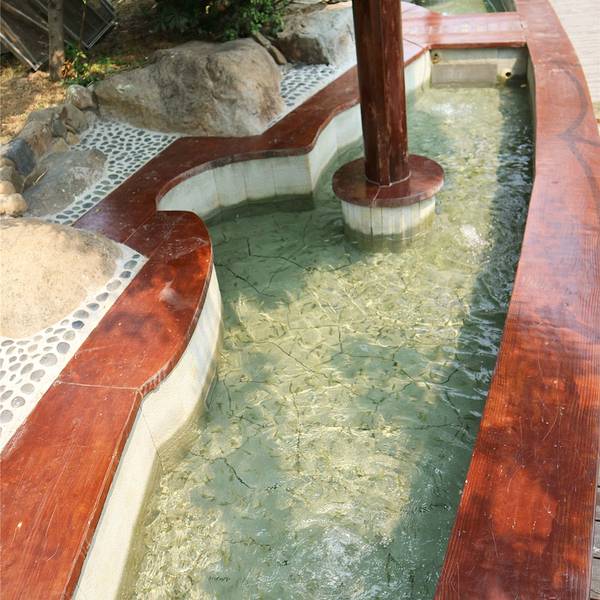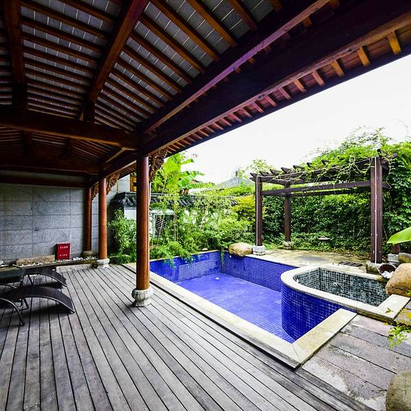 云澜湾的温泉室外汤池区以精致造景、诗意情境为特色,将东方园林景观与西方精神理疗融合,可以说是“一池、一景、一诗、一意境”。根据不同养生功能,室外温泉区划分为九大特色区六十个汤池。九大区分别是:四象星座区、五大莲池区、六合养生区、七星邀月区、八卦木桶区、琼浆美肤区、别有洞天区、德式水疗区、童游水乐区,在这些区内,分布有幽澜古泉、云澜瀑布泉两大特色泉以及六十个功能各异的温泉池和私密汤屋,提供丰富多样的泡汤体验,原汤系列、花草系列、果蔬系列、中药系列、美食系列、美酒系列、茶文化系列等特色汤池,养生养心、养颜养肤,清新自然,随心所浴。