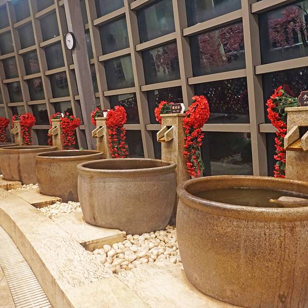 双莲温泉中心以两座盛开莲花的古井为主体,“双莲温泉”与历史悠久的“幽澜泉”相呼应,寓意“冷热双泉,‘井’上添花”;外形复刻西方奢美,内以双扇穹顶、水云纹饰、四柱莲花底座等东方传统风雅涵之,东情西韵,延古续今,恰是万年古水今露真容。按楼层分布划分为四大功能区域,一层为温泉接待区、更衣区、室内水疗大厅、功能房和室外园林温泉,二层为云澜古镇和“莲塘秋”特色餐厅、网吧书吧、乒乓球室、健身房和台球室、三层为休闲娱乐区和SPA区。在这里,可以满足从泡汤养生到休闲娱乐的全部一站式温泉体验,活出闲观庭前花开花落云卷云舒的从容心境。温泉中心水疗大厅
