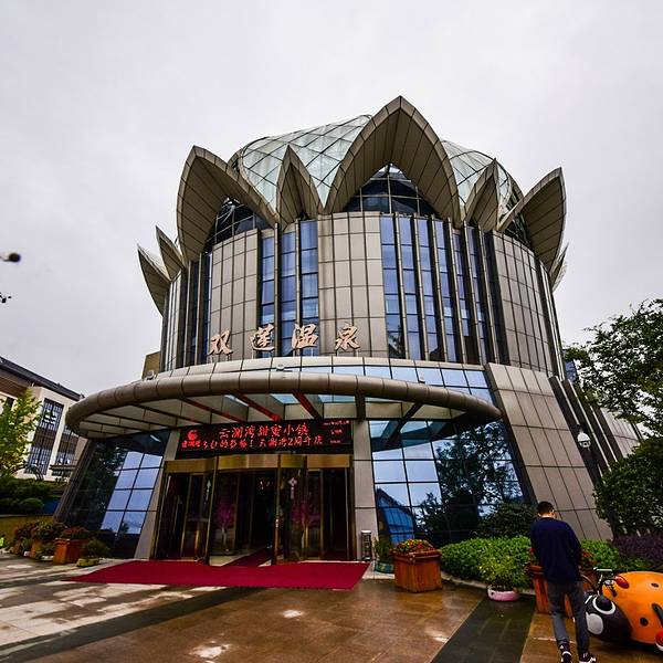 双莲温泉中心,由迪拜帆船酒店缔造者英国阿特金斯原创设计,总建筑面积30000多平方米;拥有近3000个更衣柜,瞬间可容纳人流约3000人;以“三星九区六十汤”为特色,由室外园林温泉与室内丰富的“吃喝玩乐购”等休闲配套组成,是一个“四季全天候运营”的多形态艺术主题温泉旅游度假目的地。