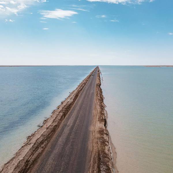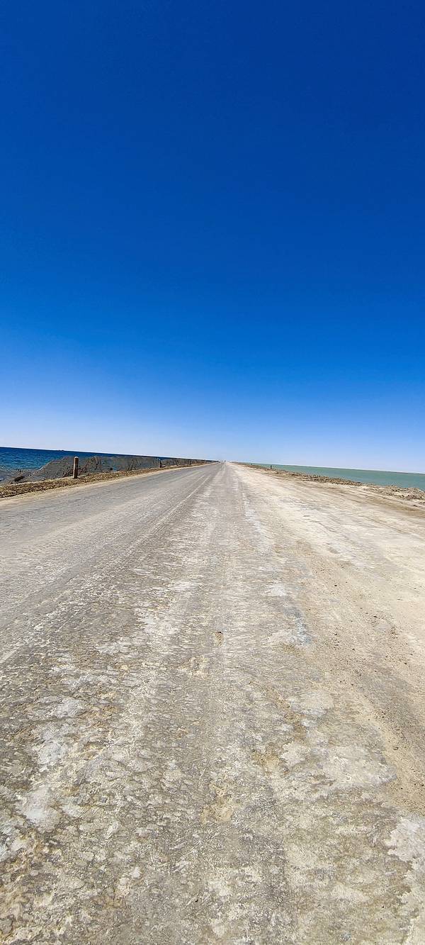 ...实是美景,公路分开了湖水,两侧的湖水因地质和阳光折射呈现出不同的颜色,一侧偏蓝且广袤,类似大海【价格】免费
