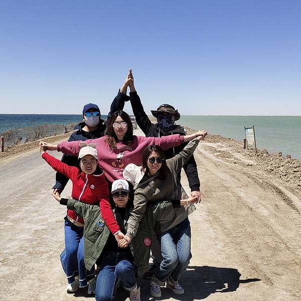 没有无人机的可以尝试从车的天窗钻出来拍摄视频和照片,也很赞,就是风有一丢丢的大西台吉乃尔湖又名“双色湖”,315国道穿越其中,两边的湖水是不一样的颜色,一边蓝,一边绿,也很适合航拍。