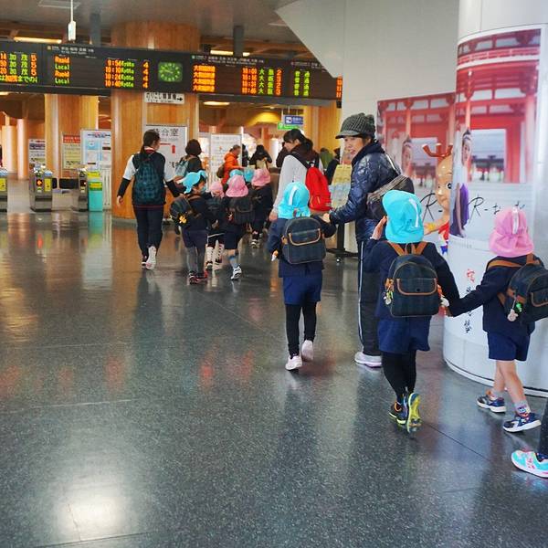 回JR站坐了公车,碰到小学生们放学。