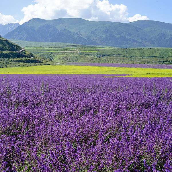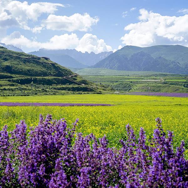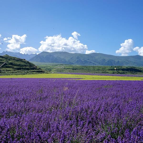薰衣草花田位于松潘县境内,绿色的山,紫色的薰衣草,黄色的油菜花,全部都构成了一幅美丽的画卷,流连忘返。