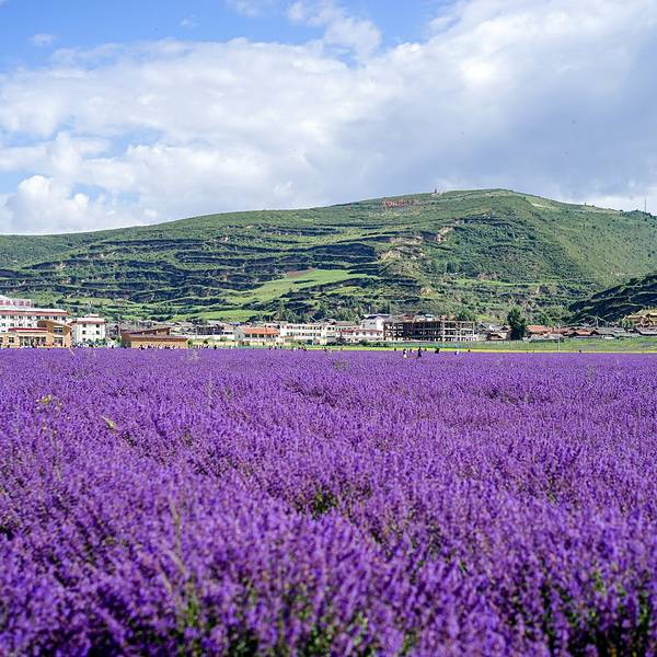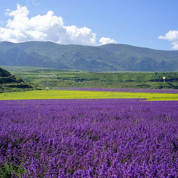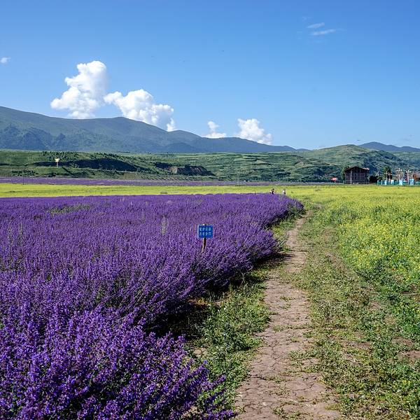 薰衣草花田是在川主寺向九寨方向拐向九黄机场的路途中,是一个开放的薰衣草花田。紫色的薰衣草,绿色的青山,蓝天白云,还有黄色的油菜花,层层分开的色彩,让整幅画面显现的更加像一幅美丽的画卷,并且周围的环境秀丽,在阳光下能够感受到这里独特的景色美丽。而且薰衣草的花穗可以做干燥花和饰品。淡紫色、有香味的花和花蕾可以做香罐和香包,把干燥的花密封在袋子内便可做成香包,将香包放在衣柜内,可以使衣服带有清香,并且可以防止虫蛀。
