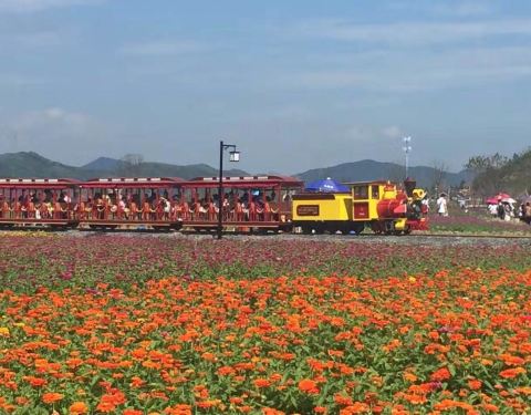 这里不错的,花很美,尤其是火车很漂亮,坐着火车可以观赏到景区的所有花海,是次不错的体验。