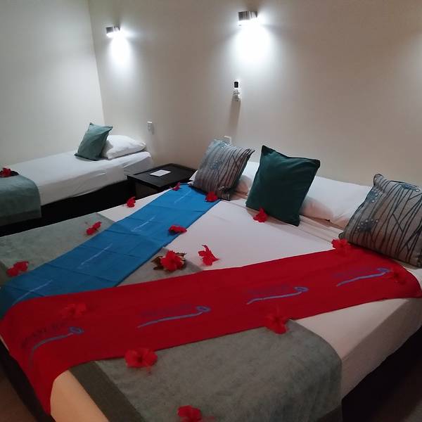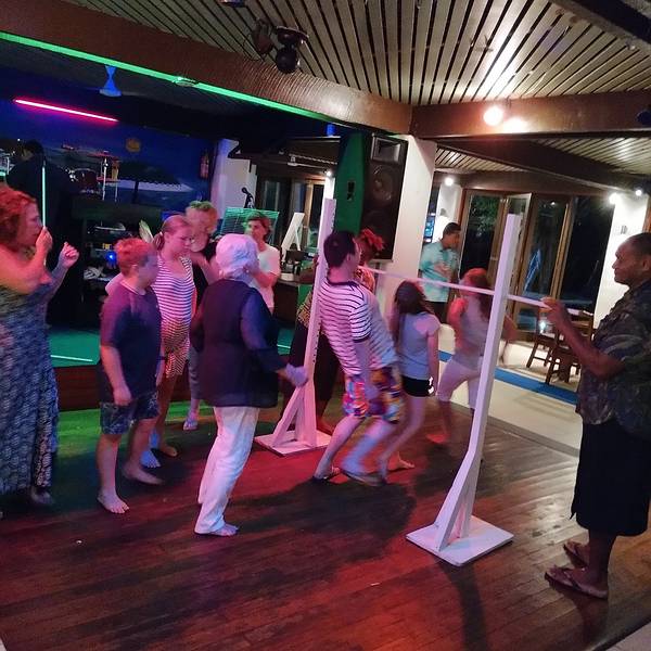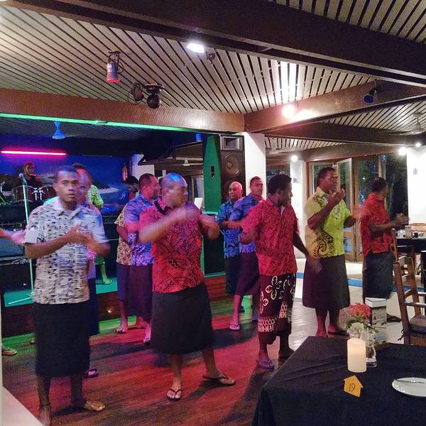之后,陈大哥帮我们换好了船票,托运好行李,一直送我们上船后才离开。也就是踏上船的一刻,外岛的一切事情要靠自己来应付了。每到一个岛,船上广播会报站,而且到站时间和时刻表也差不多,所以只要听好广播就行,不清楚的就问工作人员,都很热情!远远的就能听见金银岛工作人员在唱歌欢迎我们的到来!一觉醒来,已经傍晚,黑板上的活动还是蛮丰富的。当天风有点大,不过还是绕着岛走了一圈,用10分钟左右,景色确实不错,我们住的房间斜对面就是教堂。晚饭是自助餐,价格是2个人164FJD。种类蛮多,也蛮可口。饭后会有工作人员表演节目,一首标准中文发音的《月亮代表我的心》让我好有归属感。之后一些游戏节目我也尝试了一下。 展开