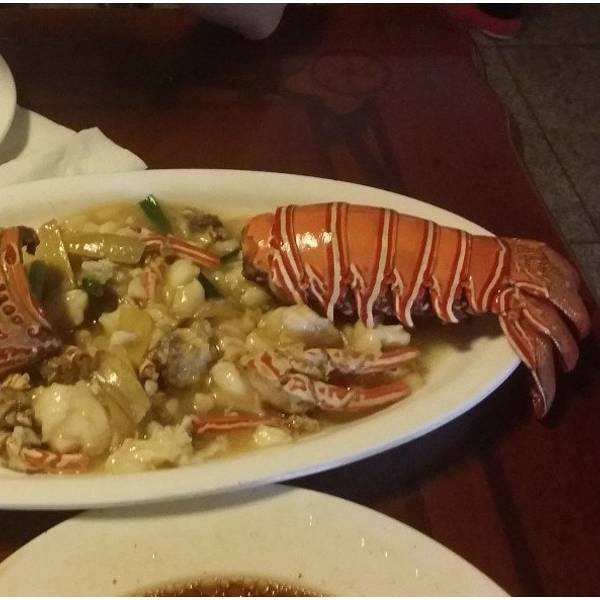 海鲜大餐真的是无比的便宜!我们这一顿下来好像才合人民币400来块钱清蒸石斑鱼、龙虾、螺肉、面包果
