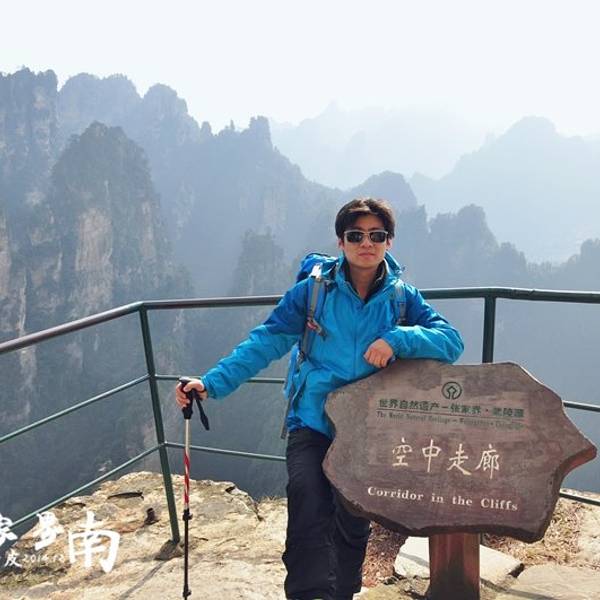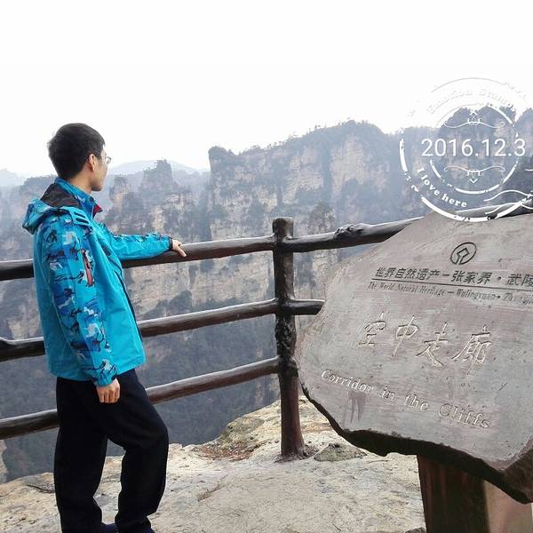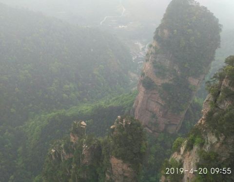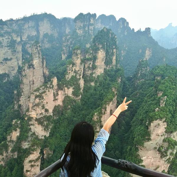 杨家界的天波府一步登天空中走廊三处景点都很壮观,我的游览速度也比网上说的需近五个小时要快,我体...12:02到空中走廊,她们两个先互拍,我跟她们说坐或站岩壁突出的小平台上把左面的山峰云天带进的话有点像在天宫的感觉,不过上下这小平台时需下面有人扶撑一下,问她们两位要不要帮拍合影结果说不用,然后两位又帮...12:02到空中走廊,她们两个先互拍,我跟她们说坐或站岩壁突出的小平台上把左面的山峰云天带进的话有点像在天宫的感觉,不过上下这小平台时需下面有人扶撑一下,问她们两位要不要帮拍合影结果说不用,然后两位又帮我拍了几张,看景时刚才一步登天那群大学生也来了,年轻人都很健谈一交流就熟,两位是深圳的,那群大学生是广州的,我想起刚才路上一家四口也是广东的(人家说粤语的),看来今天这条线广东游客大集合啊…杨家界索道下站杨家界的天波府一步登天空中走廊三处景点都很壮观,我的游览速度也比网上说的需近五个小时要快,我体力算一般吧也一点不累,昨天天子山观景台那的峰林也印象深刻,在山上才两个半天看到的就觉得武陵源的山不仅漂亮,还这么有特点,说湖南的“唯楚有才,于斯为盛”形容这些众多出人头地昂首挺立的峰林也蛮有趣,两群大学生们和我打招呼后一起离开了,有位大学生妹子看到靠石壁放着的登山杖以为谁拉下的我说是我的,她看到我都是蓝色的衣物就感慨看来还有比我更喜欢蓝色的人啊…