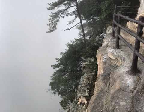 空中走廊在杨家界的南边,一步登天往前20分钟左右,而且只能原路返回,一个字:险空中走廊在杨家界的南边,一步登天往前20分钟左右,而且只能原路返回,一个字:险!我们去时雾很大,没看到壮观的景象,但足足体验了一把什么叫惊险。