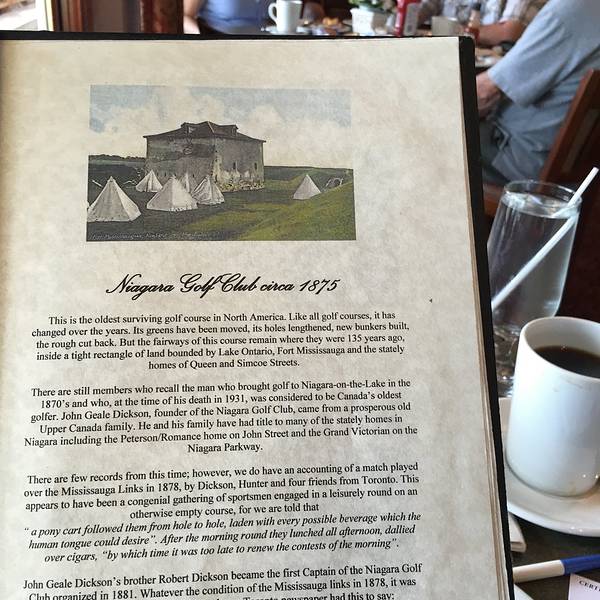 今天写的时候老被打断,Peter拿着自己煮的肉和土豆来,周末民宿的客人入住,孩子的同学按门铃,帮他们挂了两个秋千在我家门口的树上,一会又看到了彩虹追着去拍。现在忙着打一只小虫。干货的部分,信息都是确凿的。来介绍我最喜欢的尼亚加拉小镇之高尔夫餐厅。尼亚加拉高尔夫餐厅是北美最古老的一间高尔夫球场经营的餐厅。