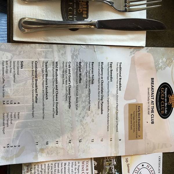 高尔夫餐厅是北美最古老的一间高尔夫球场经营的餐厅,在Queen Street上就可以看到占地面积庞大的高尔夫球场,顺着走到湖边,就可以看到这家餐厅。这里的菜品一般都是三明治,PANCAKE,班迪克等,咖啡无限续杯,九点半前更有早鸟优惠。并且午餐享用的时候还可以直接坐在户外进餐,面对安大略湖和对岸美国的水牛城,视野辽阔,景色非常诱人,可以增添进食的乐趣。
